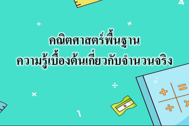 คณิตศาสตร์พื้นฐานความรู้เบื้องต้นเกี่ยวกับจำนวนจริง ความรู้เบื้องต้นเกี่ยวกับจำนวนจริง จำนวนจริงระดับ ม.2 เป็นหนึ่งในเรื่องของระบบจำนวน โดยในหัวข้อนี้เราจะศึกษาเพียงจำนวนจริงเท่านั้น ไม่พิจารณาจำนวนจินตภาพ โดยหัวข้อนี้ถือเป็นพื้นฐานทางคณิตศาสตร์ที่สามารถนำไปต่อยอดในหัวข้อต่าง ๆ ได้ เพราะเรื่องจำนวนจริง มีการประยุกต์ใช้และเป็นข้อสอบในหลาย ๆ สนามสอบ