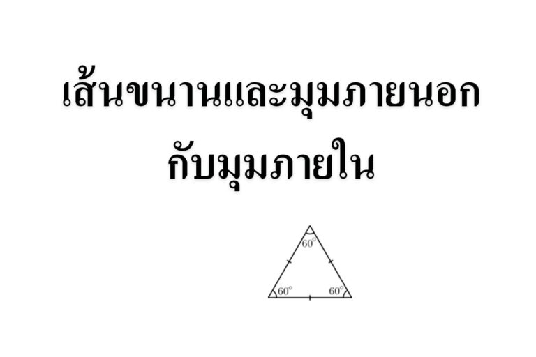 เส้นขนาน > 1 เส้นขนานและมุมภายนอกกับมุมภายใน มุมภายนอก แบ่งตามความยาวของด้าน รูปสามเหลี่ยมด้านเท่า (equilateral) มีด้านทุกด้านยาวเท่ากัน รูปสามเหลี่ยมด้านเท่าเป็นรูปหลายเหลี่ยมมุมเท่า นั่นคือมุมภายในทุกมุมจะมีขนาดเท่ากัน คือ 60° และเป็นรูปหลายเหลี่ยมปกติ [1] รูปสามเหลี่ยมหน้าจั่ว (isosceles) มีด้านสองด้านยาวเท่ากัน (ตามความหมายเริ่มแรกโดยยุคลิด ถึงแม้ว่ารูปสามเหลี่ยมด้านเท่าจะสามารถจัดว่าเป็นรูปสามเหลี่ยมหน้าจั่วได้ด้วย เพราะมีด้านที่ยาวเท่ากันอย่างน้อยสองด้าน) และมีมุมสองมุมขนาดเท่ากัน คือมุมที่ไม่ได้ประกอบด้วยด้านที่เท่ากันทั้งสอง รูปสามเหลี่ยมด้านไม่เท่า (scalene) ด้านทุกด้านจะมีความยาวแตกต่างกัน มุมภายในก็มีขนาดแตกต่างกันด้วย