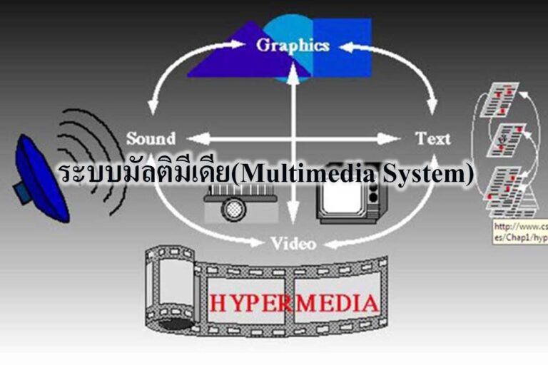 ระบบมัลติมีเดีย(Multimedia System) ระบบมัลติมีเดีย หมายถึง การนำองค์ประกอบของสื่อชนิดต่างๆ มาผสมผสานเข้าด้วยกันเพื่อให้สามารถทำงานได้อย่างมีประสิทธิภาพ ประกอบด้วย ตัวอักษร (Text) ภาพนิ่ง (Image) ภาพเคลื่อน