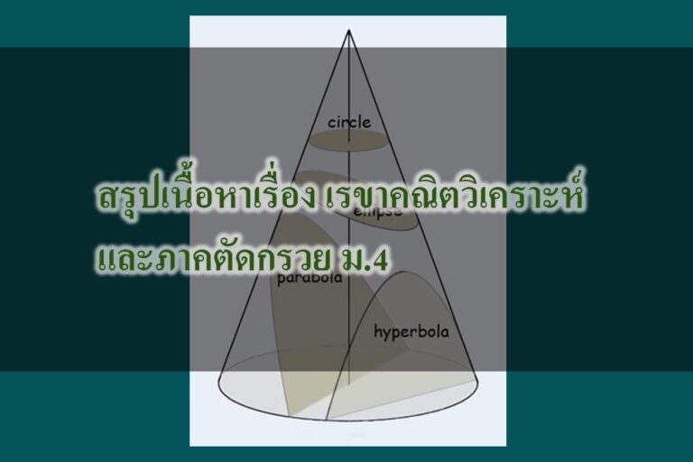 สรุปเนื้อหาเรื่อง เรขาคณิตวิเคราะห์และภาคตัดกรวย เรื่องวงรี (Ellipse) ม.4 สรุปเนื้อหาเรื่อง เส้นขนานและเส้นตั้งฉาก ความสัมพันธ์ซึ่งมีกราฟเป็นเส้นตรง ภาคตัดกรวย (conic section หรือ conic) วงกลม สมการวงกลม วงรี สมการวงรี พาราโบลา ไดเรกตริกซ์ สมการพาราโบลา