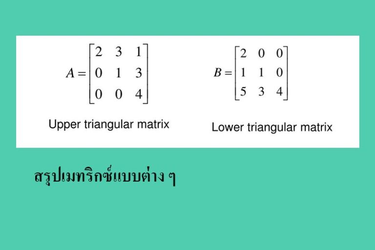เมทริกซ์แบบต่าง ๆ เมตริกซ์(Matrix) การเขียนจำนวนตัวเลขอาจเขียนในรูปแบบเฉพาะที่ตวัเลขแต่ละตวัมีตา แหน่งแน่ชดั เป็นกลุ่มเรียง แถวและหลกัอย่างเป็นระเบียบ เรียกกลุ่มตัวเลขนี้ว่าเมตริกซ์ สามารถสร้างให้กระทำเป็นระบบสอดคล้อง กันโดยกำหนดคุณสมบัติและการกระทำได้ด้วยการบวกลบ คูณและส่วนกลบั นอกจากนั้นนำไปคำนวณใน ลักษณะเฉพาะที่เรียกว่าดีเทอร์มิแนนท์ปฏิบัติการเชื่อมโยงกนัและนำไปประยุกต์ ระบบสมการเชิง เส้นได้อย่างมีประสิทธิภาพ เมตริกซ์(Matrix)