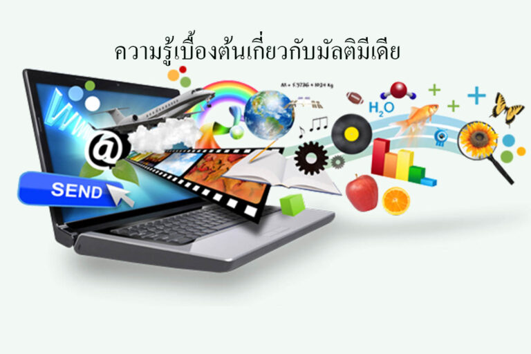 ความรู้เบื้องต้นเกี่ยวกับมัลติมีเดีย การใช้งานคอมพิวเตอร์ในปัจจุบัน ซอฟต์แวร์ต่างๆ ที่เราใช้ส่วนใหญ่จะเป็นประกอบด้วยสื่อหลายๆ แบบ ไม่ว่าจะเป็น ข้อความ รูปภาพ เสียง และอื่นๆ และแนวโน้มของการพัฒนาซอฟต์แวร์ก็จะมีการนำสื่อต่างๆ เหล่านี้มาใช้ร่วมกันมากยิ่งขึ้น
