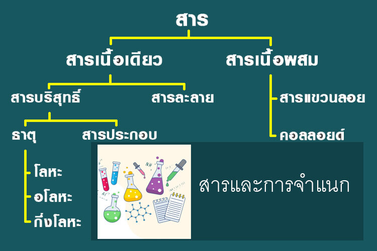 สมบัติของสาร เรื่องที่ 1 สมบัติของสาร สาร หมายถึง สิ่งที่มีมวล ต้องการที่อยู่และสัมผัสได้ มีทั้งสถานะที่เป็นของแข็ง ของเหลว และก๊าซ ตัวอย่างเช่น เงิน (Ag) และเกลือแกง (NaCl) เป็นของแข็ง น้ำ (H2O) และเอธานอล (C2H5O) เป็นของเหลว คาร์บอนไดออกไซด์ (CO2) และก๊าซออกซิเจน (O2) เป็นก๊าซ เป็นต้น สมบัติของสาร สมบัติของสาร หมายถึง ลักษณะเฉพาะตัวของสาร เช่น เนื้อสาร สี กลิ่น รส การนำไฟฟ้า การละลายน้ำ จุดเดือด จุดหลอมเหลว ความเป็นกรด-เบส เป็นต้น