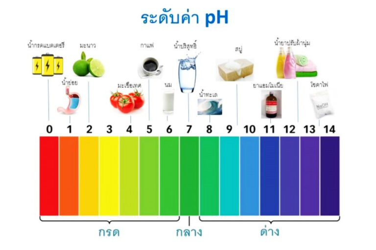 ค่า pH ของสารละลาย pH ของสารละลาย คือ ค่าที่แสดงถึงความเข้มข้นของไฮโดรเจนไอออน (H +) หรือไฮโดรเนียมไอออน (H 3O +) ใช้บอกความเป็นกรดหรือเบสของสารละลาย โดยค่า pH ของสารละลายเป็นค่าลอการิทึมของไฮโดรเจนไอออน ( หรือไฮโดรเนียมไอออน) ที่เป็นลบ