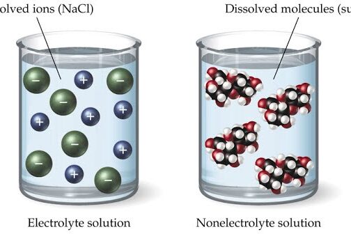 สารละลายอิเล็กโทรไลต์ อิเล็กโทรไลต์ (Electrolyte) หมายถึง สารที่ี่เมื่อละลายในน้ำจะนำไฟฟ้าได้ เนื่ื่องจากมีไอออนซึ่งอาจจะเป็นไอออนบวก หรือไอออนลบเคลื่อนที่ี่อยู่ในสารละลาย สารละลายอิเล็กโทรไลต์นี้ี้อาจเป็นสารละลายกรด เบส หรือเกลือก็ได้ ตัวอย่างเช่น สารละลายกรดเกลือ (HCl) สารละลายโซเดียมไฮดรอกไซด์ (NaOH) และสารละลายของเกลือ KNO3 เป็นต้น โดยในสารละลายดังกล่าวประกอบด้วยไอออน H+ , Cl– , OH– , K+ และ NO3 – ตามลำดับ