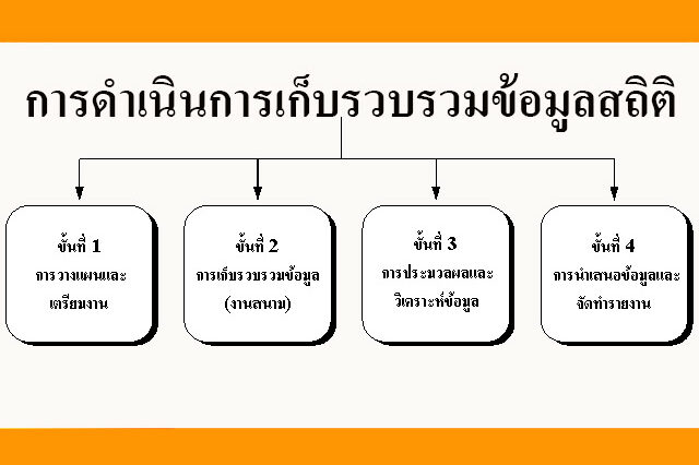 การดำเนินการเก็บรวบรวมข้อมูลสถิติ การดำเนินการเก็บรวบรวมข้อมูล เพื่อนำมาจัดทำเป็นข้อมูลสถิติมีวิธีการที่ใช้โดยทั่วไปมี 5 วิธี ดังนี้ 1. การเก็บรวบรวมข้อมูลจากรายงาน (Reporting System) เป็นผลพลอยได้จากระบบการบริหารงาน เป็นการเก็บรวบรวมข้อมูลจากรายงานที่ทำไว้หรือจากเอกสารประกอบการทำงาน ซึ่งการเก็บรวบรวมข้อมูลจากรายงานส่วนมากใช้เพียงครั้งเดียว จากรายงานดังกล่าว อาจมีข้อมูลเบื้องต้น บางประเภทที่สามารถนำมาประมวลเป็นยอดรวมข้อมูลสถิติได้ วิธีเก็บรวบรวมข้อมูลจากรายงานของหน่วยบริหาร นับว่าเป็นวิธีการรวบรวมข้อมูลสถิติโดยไม่ต้องสิ้นเปลืองค่าใช้จ่ายในการดำเนินงานมากนัก ค่าใช้จ่ายที่ใช้ส่วนใหญ่ก็เพื่อการประมวลผล พิมพ์แบบฟอร์มต่างๆ ตลอดจนการพิมพ์ รายงาน วิธีการนี้ใช้กันมากทั้งในหน่วยงาน รัฐบาลและเอกชน