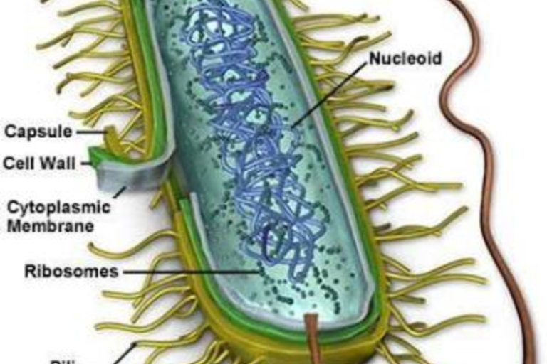 โครงสร้างของแบคทีเรีย (Kingdom Monera) 1. เป็นสิ่งมีชีวิตเซลล์เดียวที่มีขนาดเล็กประมาณ 1- 5 ไมโครเมตร โครงสร้างเซลล์แบบโพรคาริโอต (prokaryotic cell) มีผนังเซลล์เป็นสารประกอบเพปทิโดไกลแคน