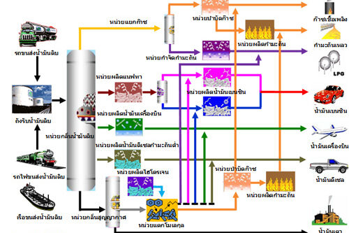 กระบวนการกลั่นน้ำมันของแต่ละโรงกลั่น จะแตกต่างกันบ้างขึ้นอยู่กับองค์ประกอบหลายประการ เข่น คุณสมบัติของน้ำมันดิบที่นำเข้า ชนิดและคุณภาพของผลิตภัณฑ์สำเร็จรูปที่ต้องการ แต่ทั่วไปกระบวนการกลั่นจะประกอบด้วยกรรมวิธีย่อยที่สำคัญดังนี้