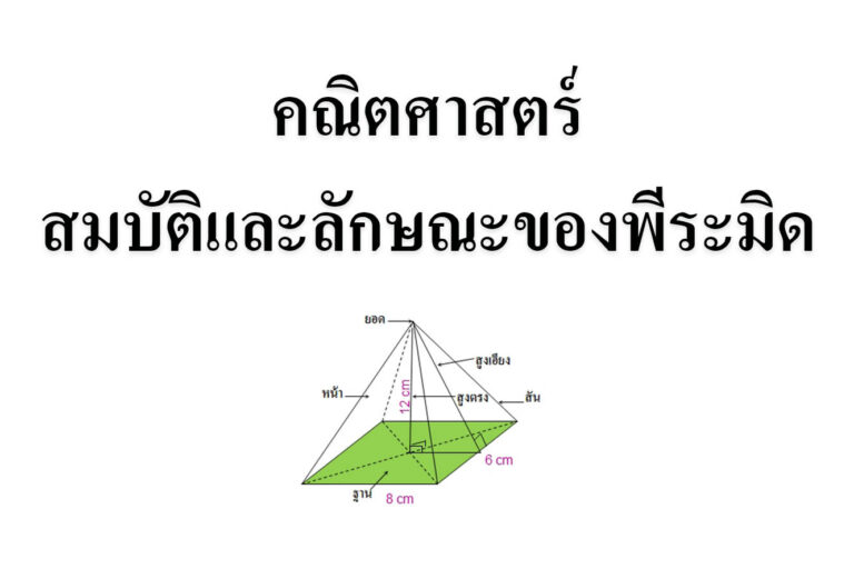 สมบัติและลักษณะของพีระมิด พีระมิด คือ วัตถุทรงสามมิติซึ่งฐานเป็นรูปหลายเหลี่ยม มีหน้าทุกหน้า (ผิวข้าง) เป็นรูปสามเหลี่ยมโดยมีจุดยอดร่วมกันที่จุดหนึ่ง ทั้งนี้ยอดไม่อยู่ในระนาบเดียวกับฐาน