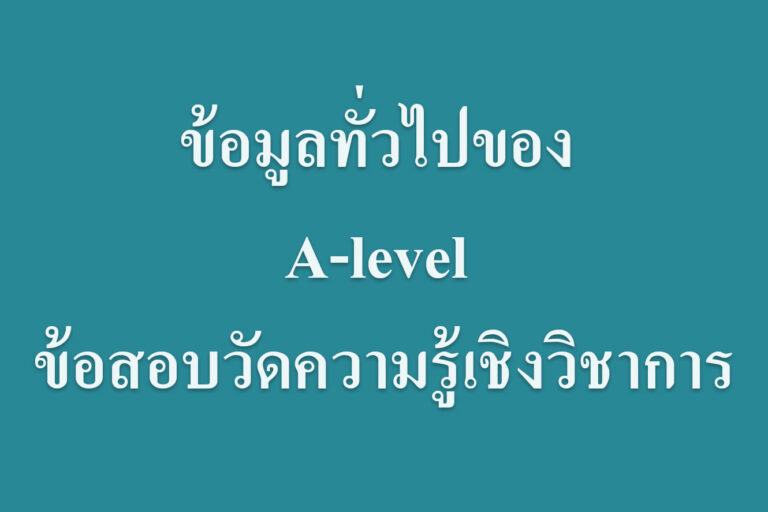 มาดูข้อมูลทั่วไปของ A-level ข้อสอบวัดความรู้เชิงวิชาการ ข้อมูลทั่วไปของ A-level A-Level (Applied Knowledge Level) คือ ข้อสอบวัดความรู้เชิงวิชาการ