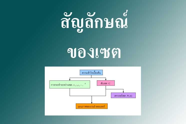 สัญลักษณ์พื้นฐานเกี่ยวกับเซต เซต (Set) คืออะไร ? เซต คือ กลุ่มของสิ่งต่าง ๆ ที่สนใจ โดยเมื่อกล่าวถึงกลุ่มใดจะสามารถบอกได้แน่นอน ว่าสิ่งใดอยู่ในกลุ่ม สิ่งใดไม่อยู่ในกลุ่ม มักใช้อักษรภาษาอังกฤษตัวใหญ่ในการกล่าวถึงเซต เช่น กลุ่มของประเทศในเอเชีย ตัวอย่างเซต เช่น เซตของประเทศในเอเชียตะวันออกเฉียงใต้ ตัวอย่างของสิ่งที่ไม่ใช่เซต เช่น เซตของคนหน้าตาดี (เพราะไม่สามารถบอกได้แน่ชัดว่าแต่ละคนอยู่หรือไม่อยู่ในกลุ่มนี้) สมาชิก คือ สิ่งที่อยู่ในเซต โดยใช้สัญลักษณ์ ∈ แทนคำว่า “เป็นสมาชิก” หรือ “อยู่ใน” เช่น ถ้า 7 เป็นสมาชิกของเซต A จะเขียนแทนด้วยสัญลักษณ์ 7 ∈ A วิธีการเขียนเซตรูปแบบต่าง ๆ การเขียนเซต เราจะสามารถเขียนได้ 2 รูปแบบ ได้แก่ แบบแจกแจงสมาชิก เขียนสมาชิกทุกตัวของเซต โดยใช้ { } ครอบสมาชิกของเซตทั้งหมด และใช้สัญลักษณ์ , เพื่อแยกสมาชิกแต่ละตัว เช่น {ม่วง, คราม, น้ำเงิน, เขียว, เหลือง,…