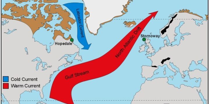 ร้อยละ 70 ของพื้นผิวโลกถูกปกคลุมด้วยมหาสมุทร ทำให้มหาสมุทรมีผลอย่างมากต่อสภาพภูมิอากาศ เพราะมหาสมุทรสามารถกักเก็บความร้อนไว้ได้ดี แล้วจึงค่อยๆ ปลดปล่อยความร้อนออกมา ทำให้กระแสน้ำในมหาสมุทรสามารถไหลไปยังที่ต่างๆ เป็นระยะทางไกลได้ กระแสน้ำทำให้อุณหภูมิผิวน้ำเปลี่ยนแปลงไป ซึ่งส่งผลต่อสภาพอากาศ โดยเฉพาะอย่างยิ่งในบริเวณชายฝั่งทะเล ยกตัวอย่างเช่น บริเวณชายฝั่งทะเลตะวันตกของประเทศสหรัฐอเมริกา อุณหภูมิบริเวณดังกล่าวจะได้รับอิทธิพลจากความเย็นของกระแสน้ำแคริฟอร์เนีย ทำให้อากาศไม่ร้อนเกินไปนัก ในทำนองเดียวกัน กระแสน้ำอุ่นกัลฟ์สตรีมจะทำให้อุณหภูมิของประเทศอังกฤษไม่หนาวจัดเกินไปนัก