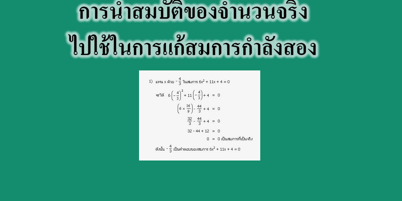 การนำสมบัติของจำนวนจริงไปใช้ในการแก้สมการกำลังสอง