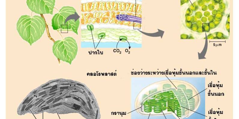 รูปภาพแสดงตำแหน่งและองค์ประกอบของคลอโรพลาสต์ในพืช