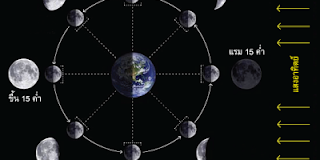 – ดวงจันทร์มืดทั้งดวง > สว่างเต็มดวง = ข้างขึ้น
