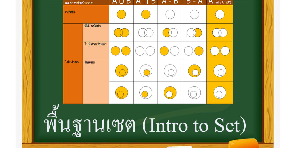พื้นฐานเซต (Intro to Set)คุณสมบัติบางประการที่สำคัญเกี่ยวกับการดำเนินการของเซต มีดังนี้