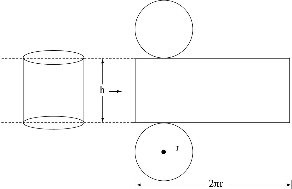 เมื่อ r แทนรัศมีของวงกลมที่เป็นฐาน h แทนความสูงของทรงกระบอก