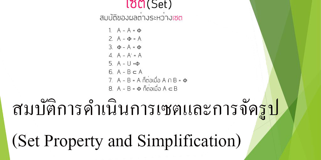 สรุป สมบัติการดำเนินการเซตและการจัดรูป (Set Property and Simplification)