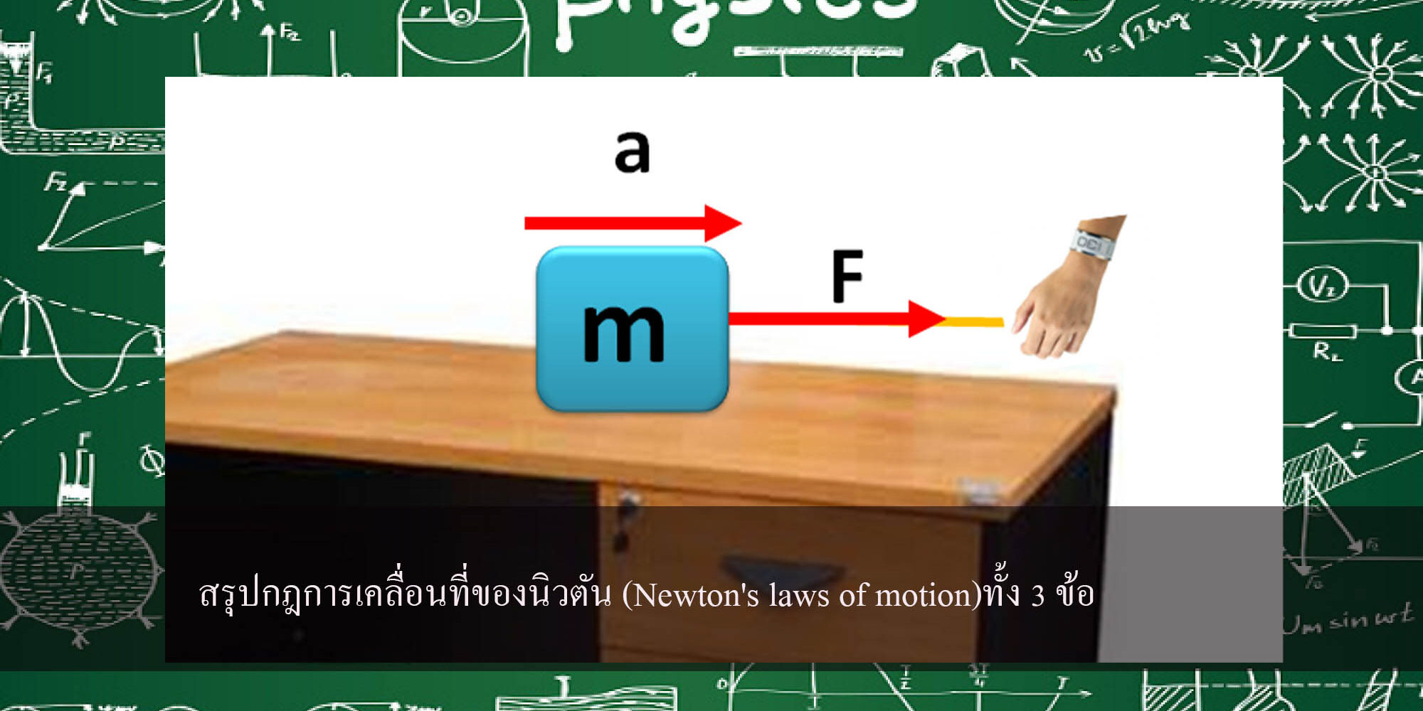 Newton’s first law of motion กล่าวว่า“วัตถุจะรักษาสภาวะอยู่นิ่งหรือสภาวะเคลื่อนที่อย่างสม่ำเสมอในแนวเส้นตรง นอกจากมีแรงลัพธ์ซึ่งมีค่าไม่เป็นศูนย์มากระทำ”คือ ถ้าวัตถุอยู่นิ่งก็ยังคงอยู่นิ่งเหมือนเดิม และถ้าวัตถุเกิดการเคลื่อนที่ก็จะเคลื่อนที่เป็นเส้นตรง ความเร็วคงที่ หรือความเร่งจะเป็นศูนย์ ซึ่งกรณีแรกจะเรียกว่า วัตถุอยู่ในสภาวะสมดุลสถิต (static equilibrium) และอีกกรณีหลังจะเรียกว่า วัตถุอยู่ในสภาวะสมดุลจลน์ (kinetic equilibrium) มีสมการเป็นดังนี้ ∑F=0 Fคือ แรงลัพธ์ทั้งหมดที่กระทำกับวัตถุ
