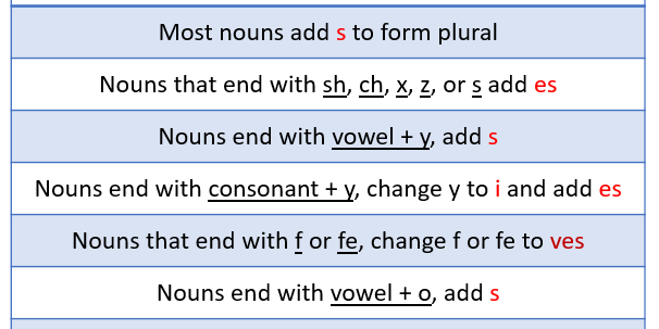 วิธีการเปลี่ยนคำนามเอกพจน์ให้เป็นพหูพจน์