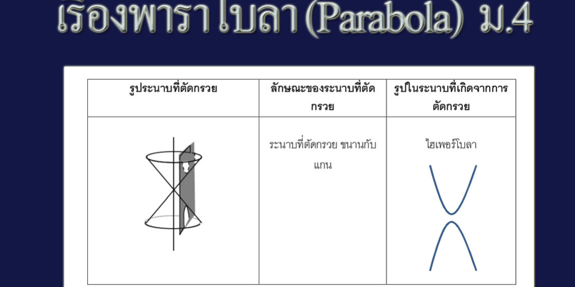สรุปเนื้อหาเรื่อง เรขาคณิตวิเคราะห์และภาคตัดกรวย เรื่องพาราโบลา (Parabola) ม.4