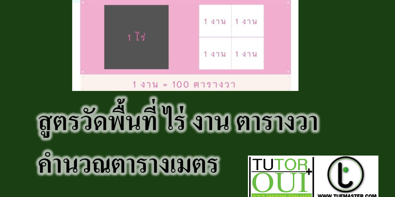 หน่วยวัดพื้นที่ดินของไทยใช้หน่วยไร่งานตารางวาตารางเมตรและวีธีการแปลงหน่วย
