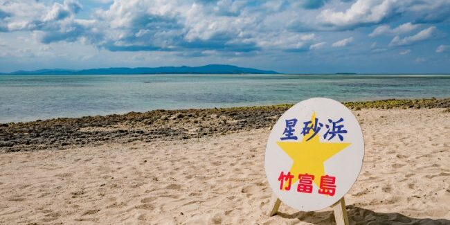 บนชายหาด Kaijihama บนเกาะทาเกะโทมิ (Teketomi) มีลักษณะธรรมดาของทะเลทั่วไป แต่สิ่งที่ไม่ธรรมดาก็คือ เม็ดทรายบนหาดทราย ที่มองเพียงครู่ก็เหมือนหาดทรายปกติ แต่ถ้าลองหยิบทรายขึ้นมาส่องอย่างละเอียดกันแล้ว เม็ดทรายที่นี่มีลักษณะคล้ายดาว