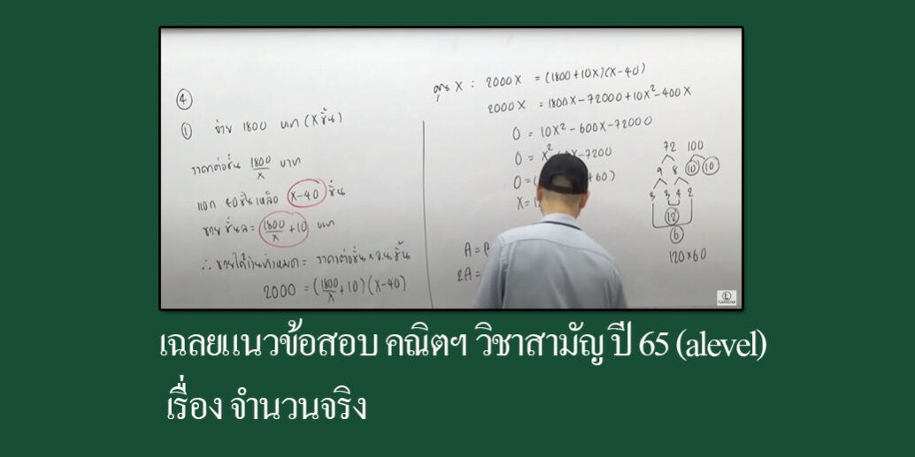 Aug42022blogคณิตศาสตร์คลังความรู้ ม.ปลายเทคนิคการทำข้อสอบคณิตศาสตร์ วิชาสามัญ (alevel) เรื่อง จำนวนจริง เฉลยแนวข้อสอบ คณิตฯ #วิชาสามัญ (#alevel ) ตอนที่ 2 #จำนวนจริง #แก้สมการ #โจทย์เรื่องราว Categories: blog, คณิตศาสตร์, คลังความรู้ ม.ปลายBy tmtyaiAugust 4, 2022 Author: tmtyai Post navigationPreviousPrevious post:สรุปสูตร ความน่าจะเป็น คณิตศาสตร์ ม.6NextNext post:สรุปเข้มเรื่องจำนวนจริง บทพื้นฐานของคณิตศาสตร์ ม.ปลายRelated Postsเลขออนไลน์ ม.4 สัญลักษณ์ของจำนวนจริง (Real Numbers )July 1, 2025เรียนออนไลน์ฟังก์ชันเอกซ์โพเนนเชียล (Expo + Log) ม.4February 5, 2025ความสัมพันธ์และฟังก์ชันการพัฒนาโปรแกรมกับฟังก์ชันJanuary 30, 2025อัพเดท ปฏิทิน TCAS68 ตารางสอบ TGAT/TPAT และ A-LevelJanuary 29, 2025เอกลักษณ์ตรีโกณมิติ-เลขออนไลน์January 27, 2025เรียนเลขออนไลน์ ตรีโกณมิติ ม.5January 26, 2025