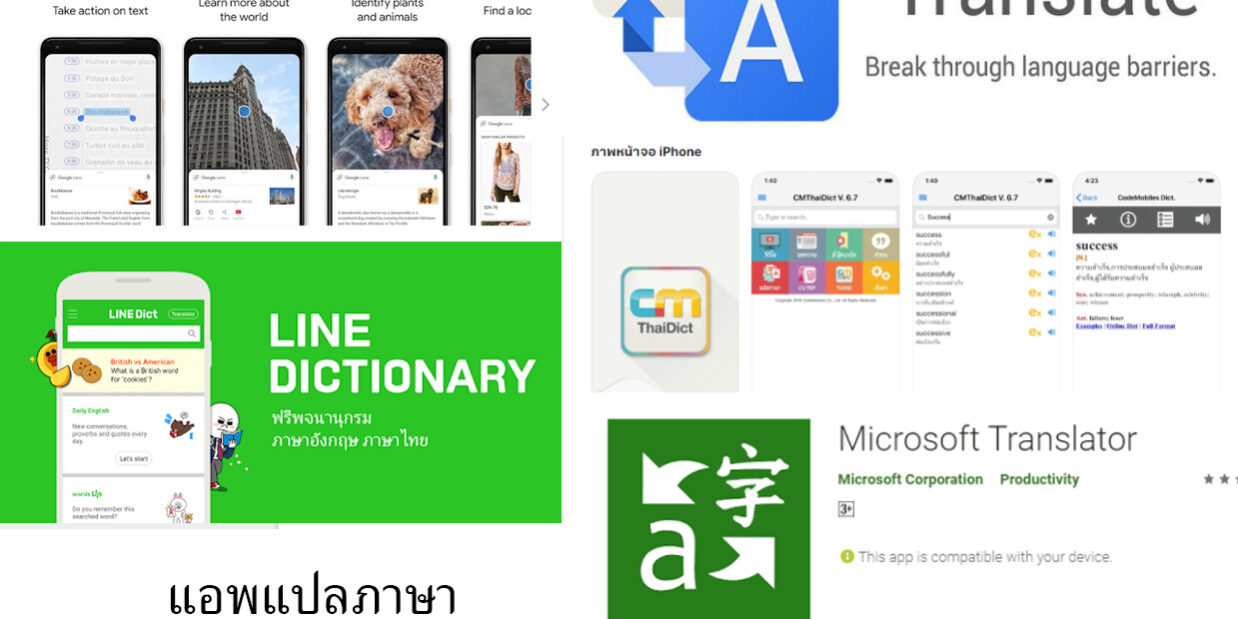 app แปลภาษา ให้ได้เลือกใช้งานกันทั้งแบบดิกชันนารี แบบแปลทั้งข้อความ หรือแม้กระทั้งแบบใช้กล้องมือถือสแกนก็แปลให้เลย เหมาะสำหรับคนที่จะเดินทางไปต่างประเทศ จะได้มั่นใจในการเดินทางไปต่างประเทศมากขึ้น หรือ นิสิต นักศึกษา ก็สามารถใช้ในการเรียนภาษาให้ห้องเรียนได้เช่นกัน