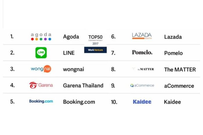 อันดับที่ 1 Agoda : อโกดา Agoda หนึ่งในบริษัทผู้ให้บริการเว็บไซต์จองห้องพักและโรงแรมที่เติบโตเร็วที่สุดในโลกและมีการเติบโตของผู้ใช้งานรวดเร็วที่สุดในเอเชีย โดยมีโรงแรมในเครือข่ายกว่า 100,000 แห่งและมีเว็บไซต์ที่ได้รับการแปลเป็นภาษาต่างๆ ถึง 40 ภาษา Agoda ยังจ่ายค่าทำงานในวันลาหยุด มีสวัสดิการให้พนักงานเป็นส่วนลดฟิตเนส ร้านอาหาร และส่วนลดสำหรับการจองห้องพักในโรงแรมอีกด้วย