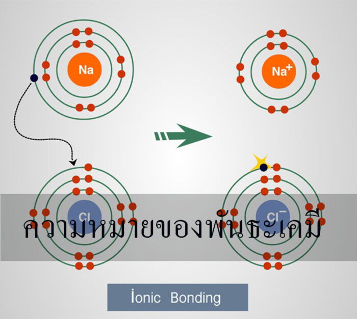 ความหมายของพันธะเคมี พันธะเคมีคือ แรงยึดเหนี่ยวที่อยู่ระหว่างอะตอมซึ่งทำให้อะตอมต่าง ๆ เข้ามาอยู่รวมกันเป็นโมเลกุลได้ การสร้างพันธะเคมีของอะตอมเกิดขึ้นได้ เนื่องจากอะตอมต้องการจะปรับตัวให้ตนเองมีเวเลนซ์อิเล็กตรอนครบ 8 หรือให้ใกล้เคียงกับการครบ 8 ให้มากที่สุด (ตามกฎออกเตต) ดังนั้นจึงต้องอาศัยอะตอมอื่น ๆ มาเป็นตัวช่วยให้อิเล็กตรอนเข้ามาเสริม หรือเป็นตัวรับเอาอิเล็กตรอนออกไป และจากความพยายามในการปรับตัวของอะตอมเช่นนี้เองที่ทำให้อะตอมมีการสร้างพันธะเคมีกับอะตอมอื่น ๆ