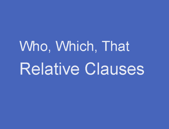 การใช้ของ who, which และ that กันก่อน Who, which และ that เป็นคำสรรพนามที่ใช้แทนประธาน/กรรมใน Relative Clauses ใช้ต่างกันดังนี้