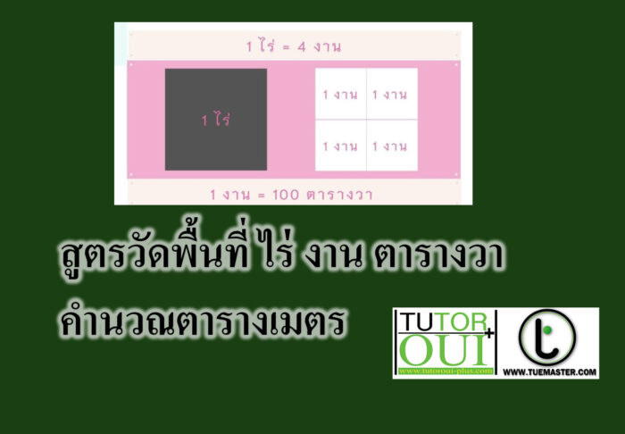 สูตรวัดพื้นที่ ไร่ งาน ตารางวา คํานวณตารางเมตร-คณิตศาสตร์ในชีวิตประจำวัน
