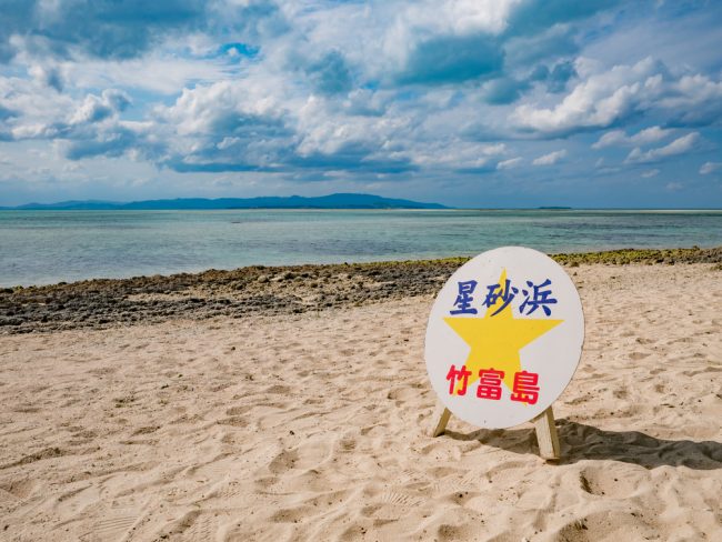 บนชายหาด Kaijihama บนเกาะทาเกะโทมิ (Teketomi) มีลักษณะธรรมดาของทะเลทั่วไป แต่สิ่งที่ไม่ธรรมดาก็คือ เม็ดทรายบนหาดทราย ที่มองเพียงครู่ก็เหมือนหาดทรายปกติ แต่ถ้าลองหยิบทรายขึ้นมาส่องอย่างละเอียดกันแล้ว เม็ดทรายที่นี่มีลักษณะคล้ายดาว