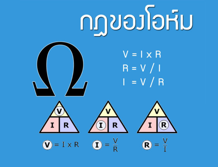 กฎของโอห์ม (Ohm’s Law) จอร์จ ไซมอน โอห์ม(George Simon Ohm) นักฟิสิกส์ ชาวเยอรมันได้ค้นพบความสัมพันธ์ระหว่างปริมาณของ ไฟฟ้าทั้ง 3 ตัว คือ ระหว่างกระแสไฟฟ้า ( I ) แรงดันไฟฟ้า (E) และตัวต้านทาน (R)และได้สรุปค่าความสัมพันธ์ ดัง