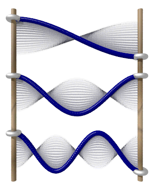 คลื่นนิ่ง คลื่นนิ่ง (standing wave) คือการแทรกสอดของคลื่นต่อเนื่อง 2 ขบวนที่มีลักษณะเหมือนกัน เคลื่อนที่เข้าหากันในตัวกลางเดียวกัน ทำให้เราเห็นตำแหน่งบัพและปฏิบัพที่เกิดขึ้นมีตำแหน่งที่อยู่คงที่แน่นอน ไม่มีการย้ายตำแหน่ง จะเห็นว่าบางตำแหน่งไม่มีการสั่นเลย เราเรียกจุดนี้ว่าจุดบัพ (Node) และมีบางตำแหน่งที่สั่นได้มากที่สุดเราเรียกจุดนี้ว่าปฏิบัพ (Antinode)