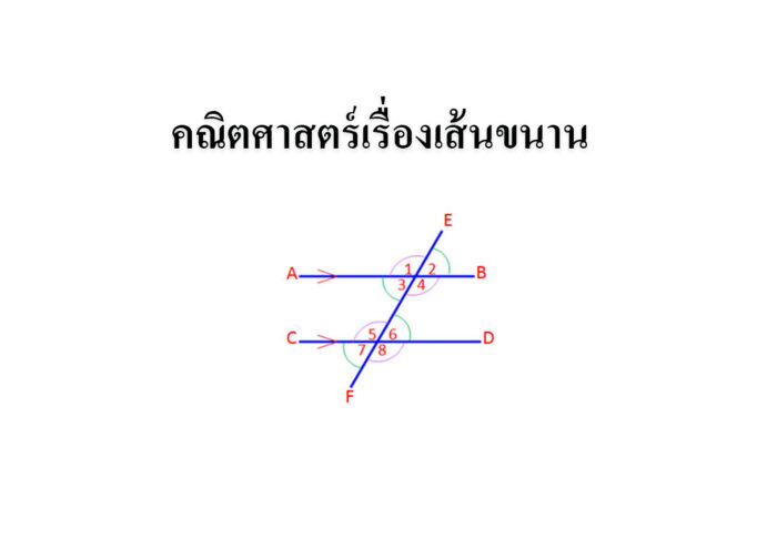 คณิตศาสตร์ม.2 เรื่องเส้นขนาน เส้นตรงสองเส้นที่อยู่ระนาบเดียวกัน ขนานกันก็ต่อเมื่อเส้นตรงทั้งสองเส้นนั้นไม่ตัดกัน ระยะห่างระหว่างเส้นขนานจะเท่ากันเสมอ