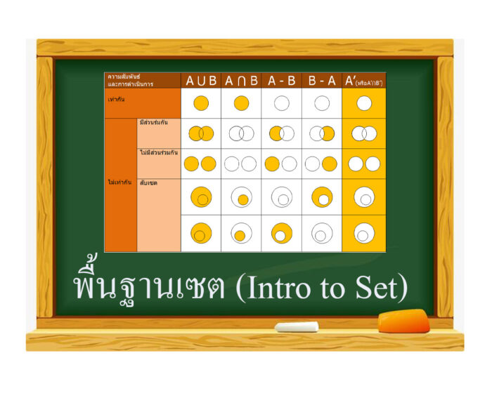 พื้นฐานเซต (Intro to Set)คุณสมบัติบางประการที่สำคัญเกี่ยวกับการดำเนินการของเซต มีดังนี้
