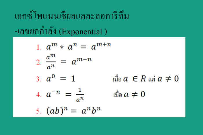 เลขยกกำลัง (Exponential) 1. เลขยกกำลังที่มีเลขชี้กำลังเป็น