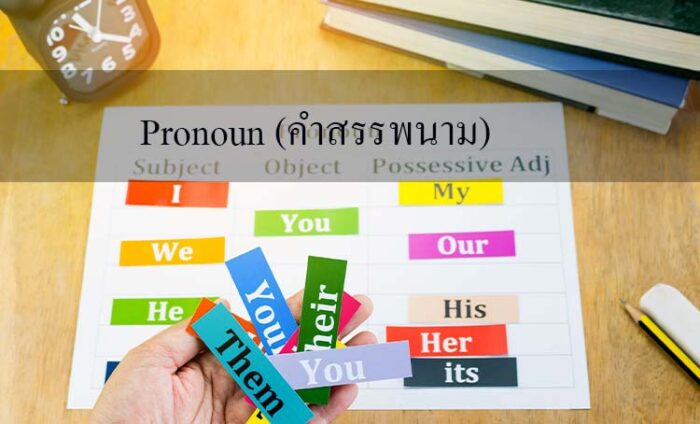Pronoun อ่านว่า โพร’เนานฺ หมายถึง คำสรรพนาม ก็คือคำที่ใช้แทนคำนาม (Noun) และทำหน้าที่เช่นเดียวกับคำนามในภาษาอังกฤษ