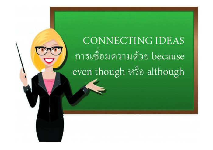 การเชื่อมความด้วย because Because มีความหมายว่า เพราะ, เพราะว่า เป็นคำเชื่อมที่ใช้แสดงเหตุและผล