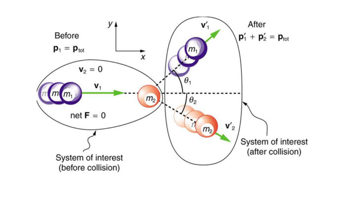การชนและโมเมนตัม(Collision and Momentum) โมเมนตัม โมเมนตัม หมายถึง ความสามารถในการเคลื่อนที่ของวัตถุ ซึ่งมีค่าเท่ากับผลคูณระหว่างมวลและความเร็วของวัตถุ มวลเป็นปริมาณสเกลาร์แต่ความเร็วเป็นปริมาณเวกเตอร์ เมื่อนำปริมาณทั้งสองเข้าคูณด้วยกัน ถือว่าปริมาณใหม่เป็นปริมาณเวกเตอร์เสมอ ฉะนั้นโมเมนตัมจึงเป็นปริมาณเวกเตอร์ คือมีทั้งขนาดและทิศทาง