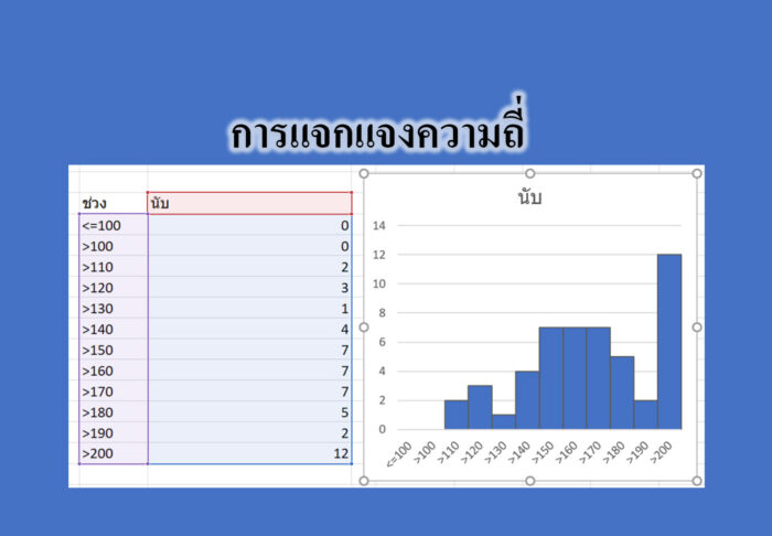 การแจกแจงความถี่ คือการนำข้อมูลมาแจกแจงเป็นช่วง ( อันตรภาคชั้น ) โดยมีการเรียงจากข้อมูลที่น้อยไปหาข้อมูลที่มาก และนับจำนวนความถี่ ของข้อมูลแต่ละกลุ่มข้อมูล เหมาะกับข้อมูลดิบที่มีจำนวนไม่มากนัก