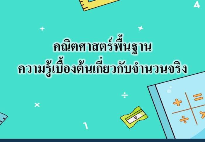 คณิตศาสตร์พื้นฐานความรู้เบื้องต้นเกี่ยวกับจำนวนจริง ความรู้เบื้องต้นเกี่ยวกับจำนวนจริง จำนวนจริงระดับ ม.2 เป็นหนึ่งในเรื่องของระบบจำนวน โดยในหัวข้อนี้เราจะศึกษาเพียงจำนวนจริงเท่านั้น ไม่พิจารณาจำนวนจินตภาพ โดยหัวข้อนี้ถือเป็นพื้นฐานทางคณิตศาสตร์ที่สามารถนำไปต่อยอดในหัวข้อต่าง ๆ ได้ เพราะเรื่องจำนวนจริง มีการประยุกต์ใช้และเป็นข้อสอบในหลาย ๆ สนามสอบ
