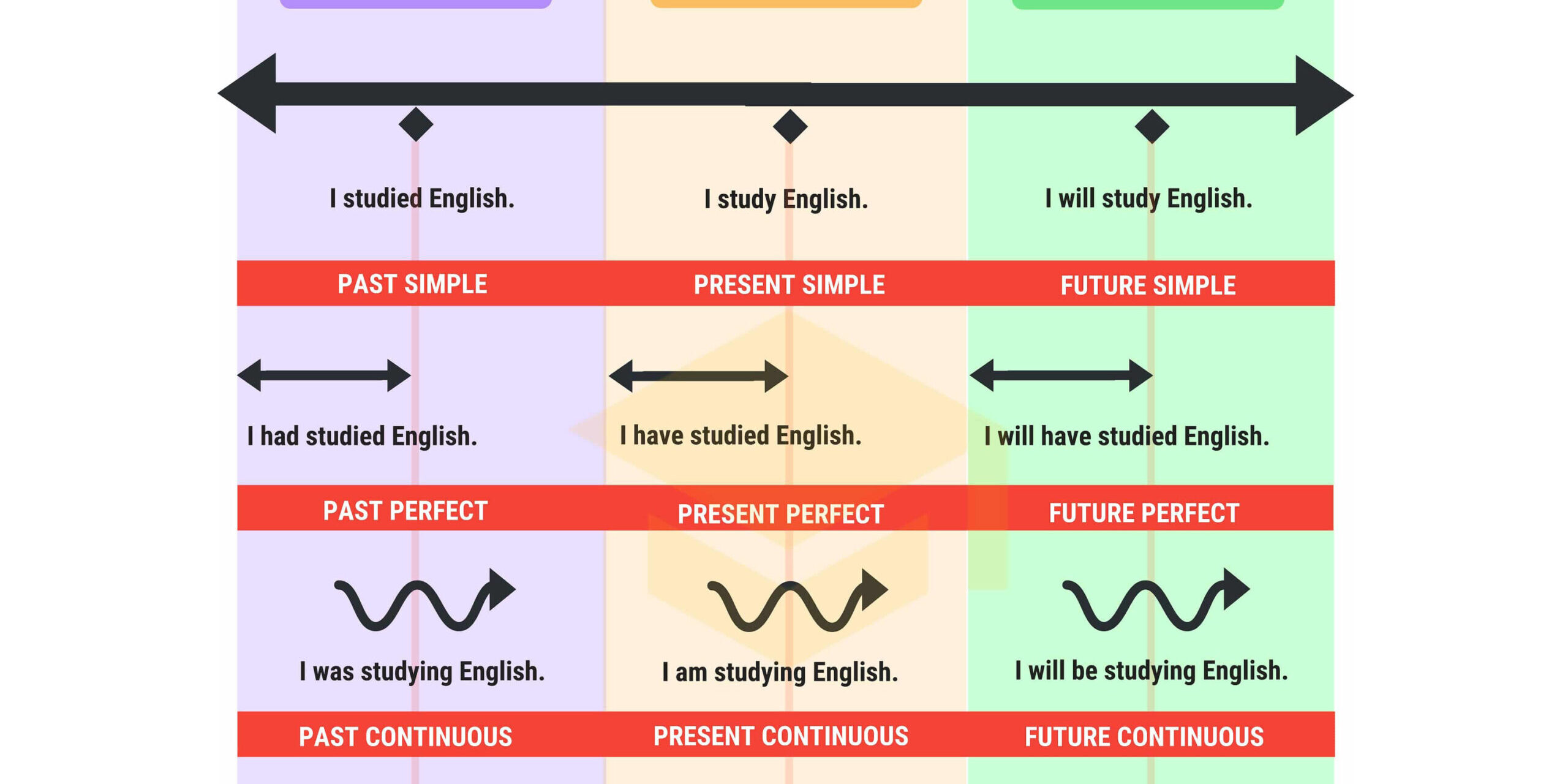 โครงสร้างของ Tense ทั้ง 12 มีดังนี้